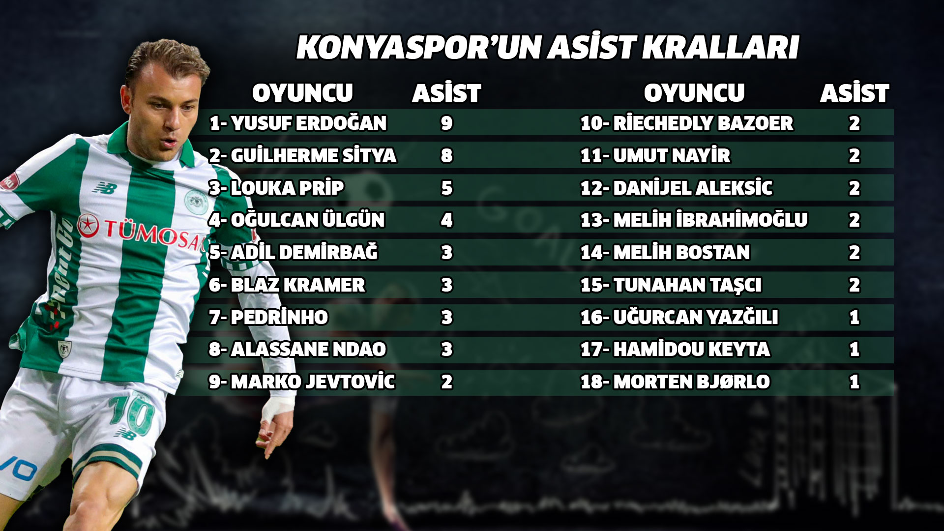 Anadolu Kartalı’nda gol atan kadar gol pası veren oyuncular da dikkat çekti. Yeşil-beyazlı takımda 18 oyuncu arkadaşlarına gol pası verdi. Listenin zirvesini 9 asistle Yusuf Erdoğan çekerken, 8 asist ile Guilherme Sitya en yakın takipçisi oldu. 5 asistle Louka Prip, 4 asistle Oğulcan Ülgün listenin devamını getirdi. 3 asistle Adil Demirbağ, Blaz Kramer, Pedrinho ve Alassane Ndao ile devam eden liste, 2 asistle Marko Jevtovic, Riechedly Bazoer, Umut Nayir, Danijel Aleksic, Melih İbrahimoğlu, Melih Bostan, Tunahan Taşcı ile devam etti. Uğurcan Yazğılı, Hamidou Keyta ve Morten Bjørlo ise arkadaşlarına 1 kez gol pası verdi.