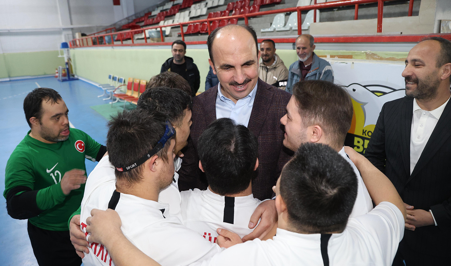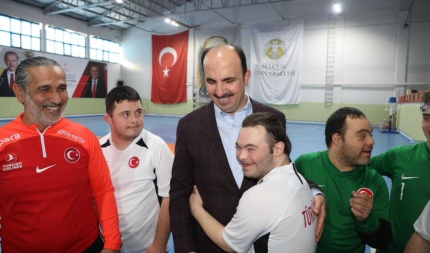 Konya Büyükşehir Belediye Başkanı Uğur İbrahim Altay, Down Sendromlular Futsal Milli Takımı’nın hazırlık yaptığı Selçuk Üniversitesi 75. Yıl Spor Salonu’ndaki antrenmanını ziyaret ederek özel sporcularla bir araya geldi.