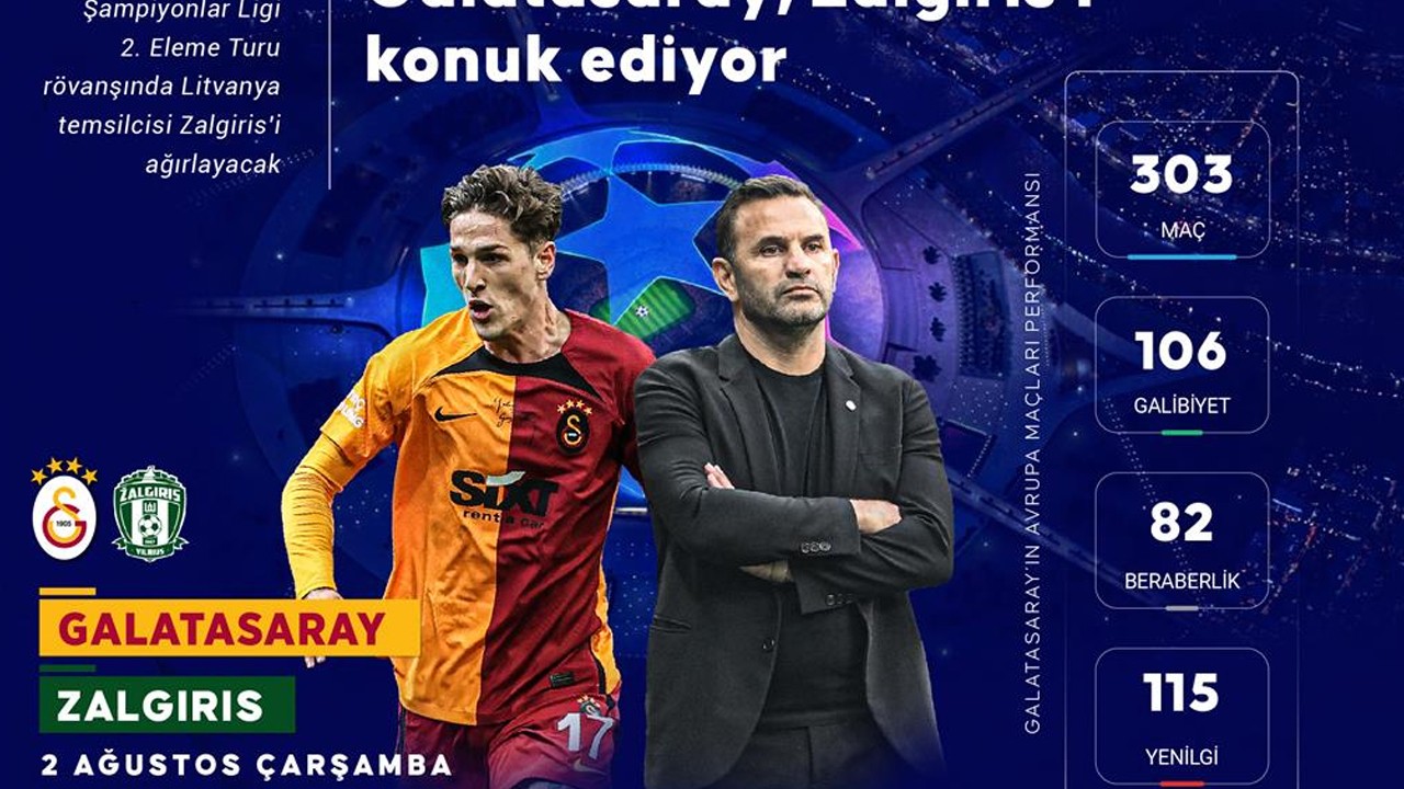 UEFA Şampiyonlar Ligi 2. Eleme Turu rövanş maçında yarın Litvanya'nın Zalgiris takımını konuk edecek Galatasaray, Avrupa kupalarında 304. kez sahne alacak.