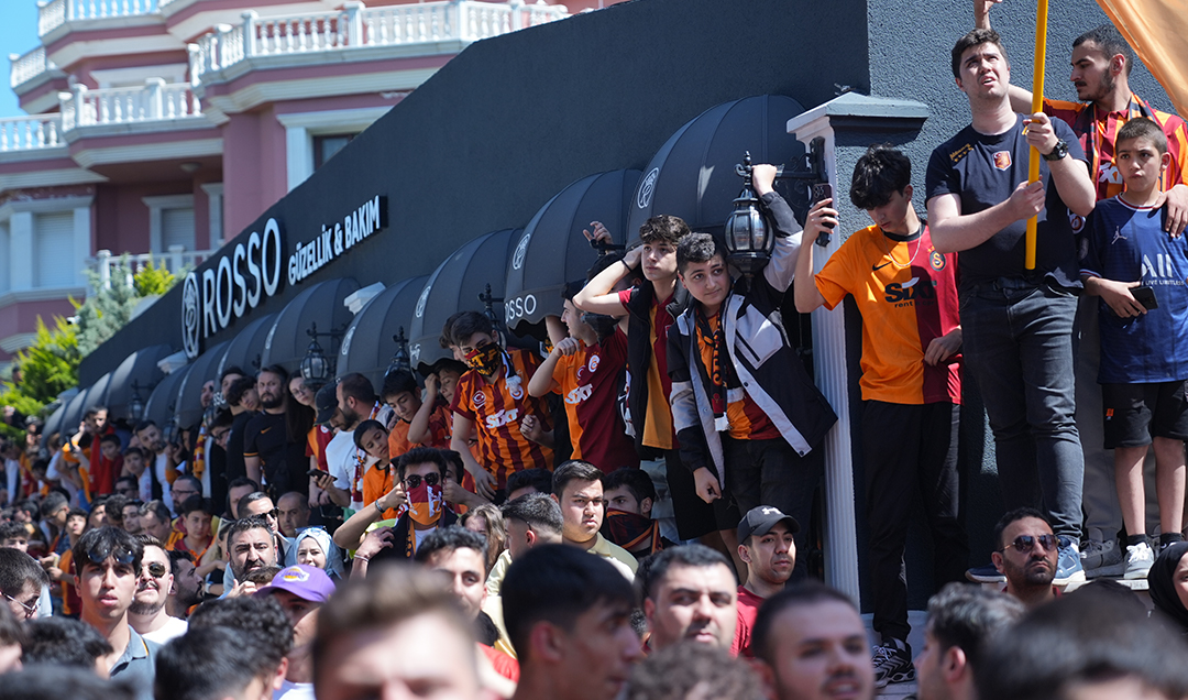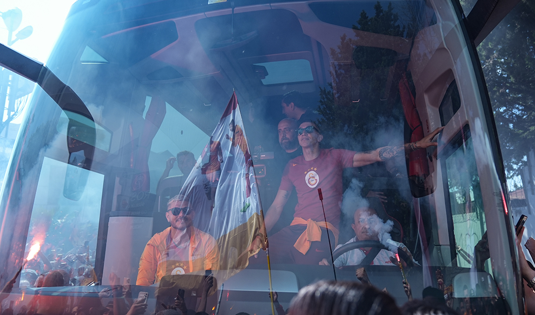 Sarı-kırmızılı oyunculardan Mauro Icardi ve Fernando Muslera da takım otobüsünün kapısından taraftara karşılık verdi.