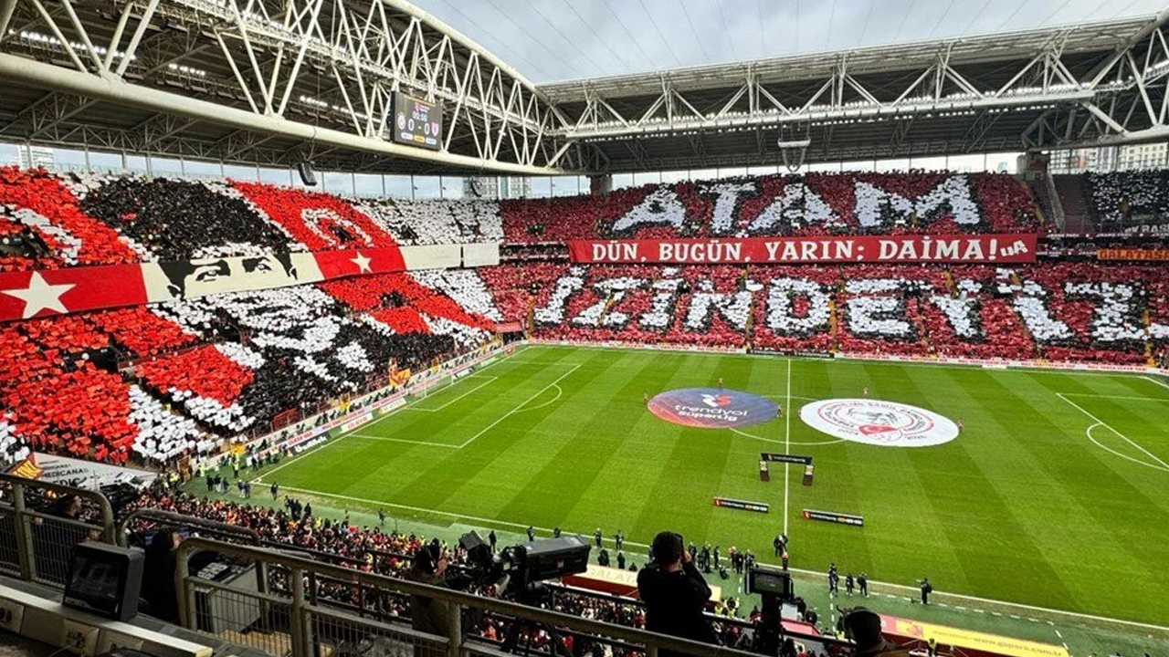 Galatasaray taraftarı maç öncesi "Atam dün, bugün, yarın ve daima izindeyiz" ifadelerinin yer aldığı bir koreografi düzenledi.