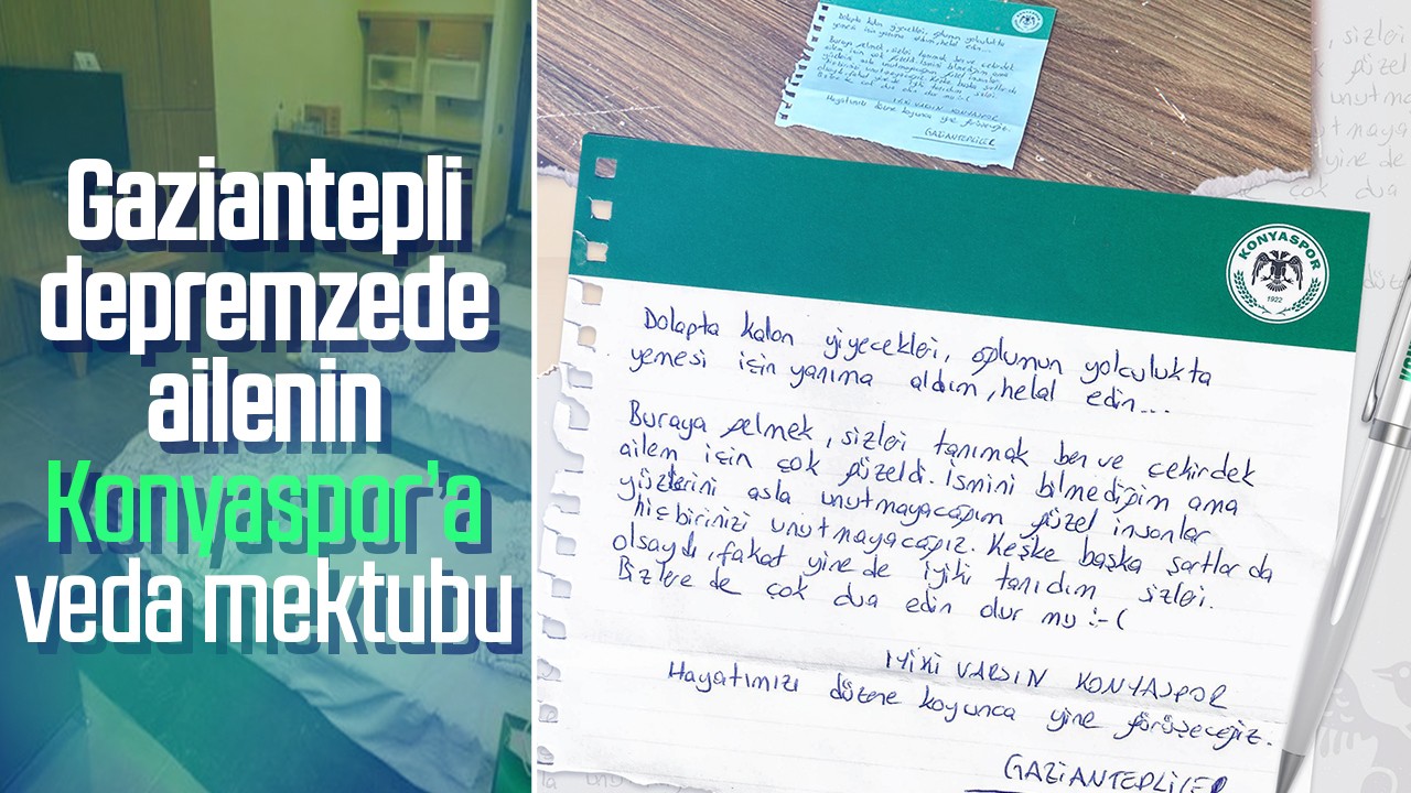 Stat localarını depremzedelere açan Konyaspor'a Gaziantepli bir aile minnet dolu bir mektupla veda etti.