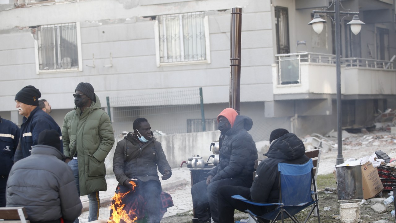 Enkaz çevresinde ateş yakarak ısınmaya çalışan Atsu'nun yakınları, görevlilere sorular sorarak devam eden çalışmalar hakkında bilgi alıyor.