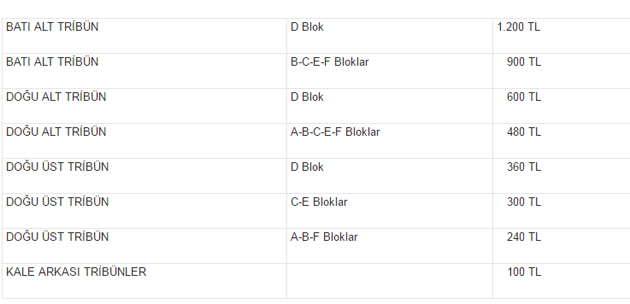 2016-2017 sezonunda iç sahada oynanacak tüm maçlarda geçerli olacak sezonluk kombinelerin fiyatları şöyle: