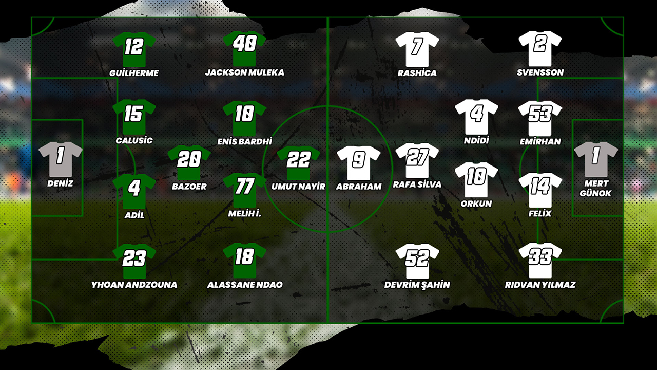 Teknik direktör Sergen Yalçın nezaretinde 4-2-3-1 sistemiyle mücadele eden Beşiktaş’ın; Konyaspor’a karşı da aynı diziliş ve oyun anlayışıyla sahada yer alması bekleniyor. Siyah-beyazlıların kalesinde Mert Günok (1), savunma 4’lüsünde Jonas Svensson (2), Emirhan Topçu (53), Felix Uduokhai (14) ve Rıdvan Yılmaz (33), 2’li ön liberoda Wilfred Ndidi (4) ile Orkun Kökçü (10), 3’lü orta alanda Milot Rashica (7), Rafa Silva (27) ve Devrim Şahin (52), ileri uçta ise Tammy Abraham’ın (9) görev alması bekleniyor. (Büşra Üstündağ)