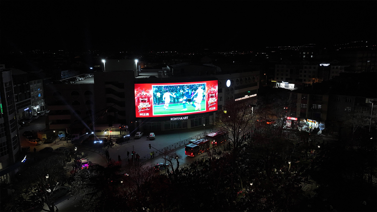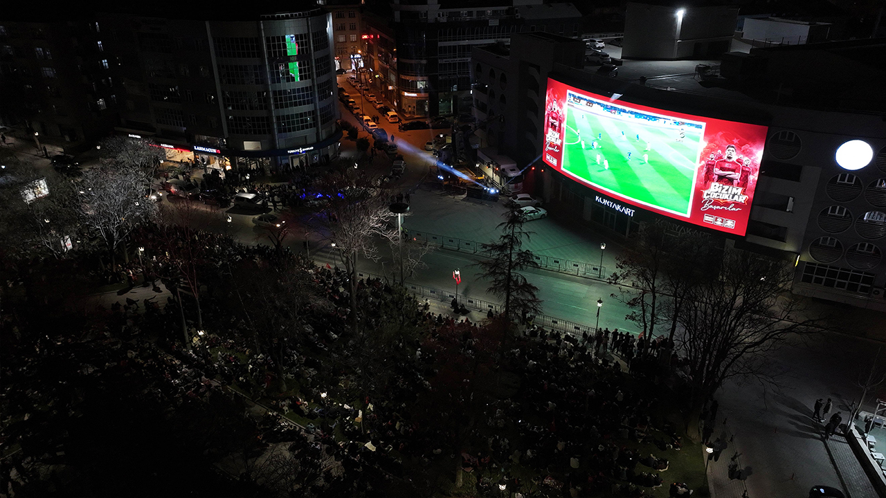 Millilerin tarihi zaferi tüm yurtta olduğu gibi Konya’da da coşkuyla kutlandı. Konya Büyükşehir Belediyesi, tarihi maçı Zindankale Katlı Otoparkı’ndaki dev ekrandan canlı vererek Konyalılara milli coşkuyu yaşattı.