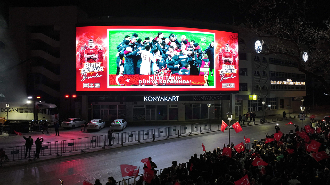 Konya'da vatandaşlar, A Milli Futbol Takımı'nın 2026 FIFA Dünya Kupası Avrupa Elemeleri play-off finalinde Kosova'yı 1-0 yendiği karşılaşmayı dev ekranlardan izledi.