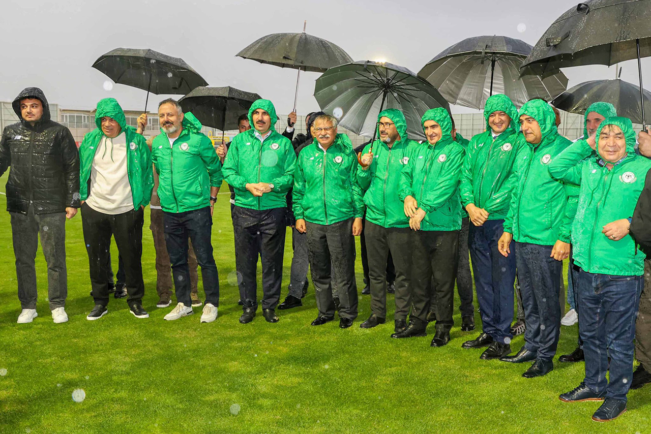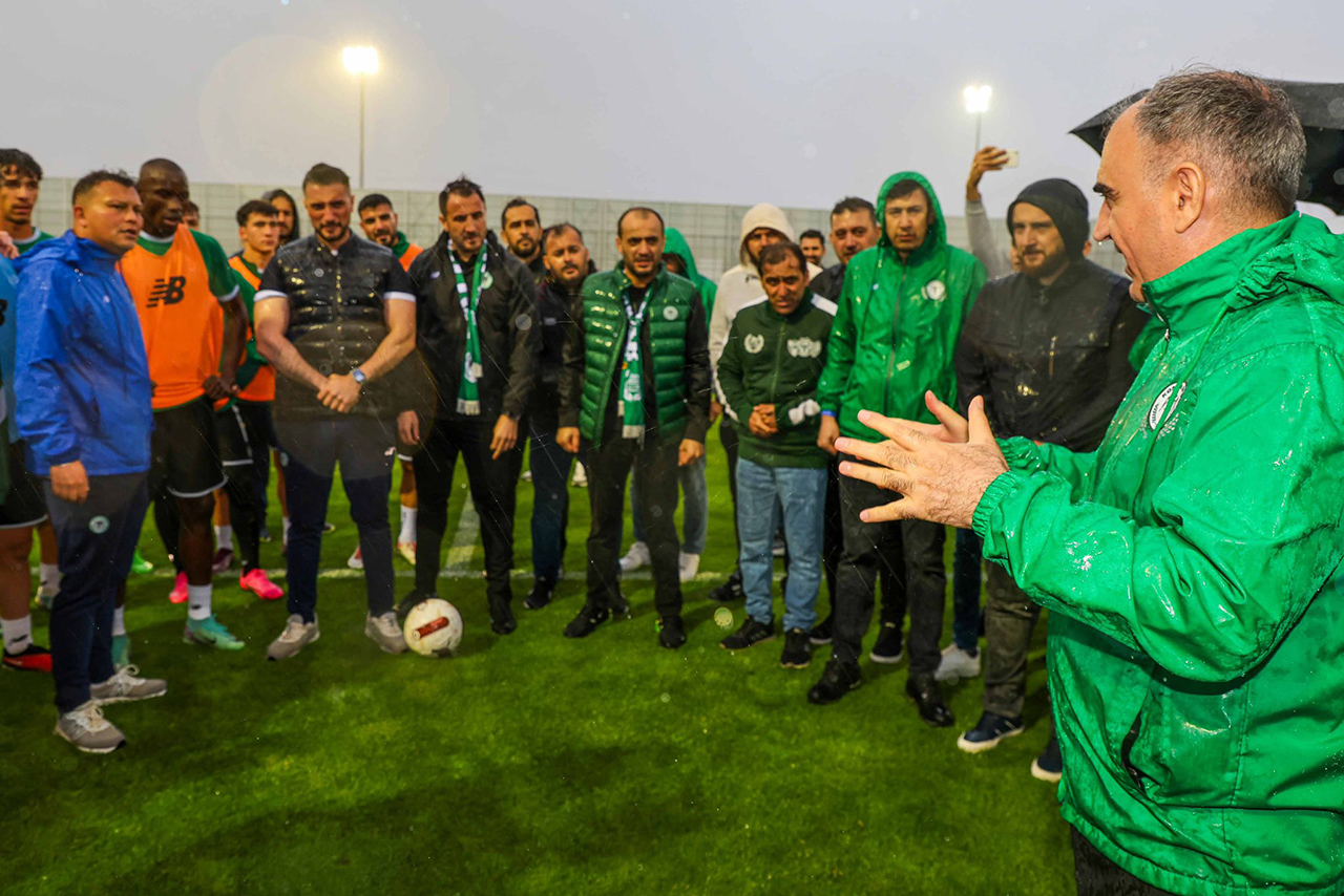 Konya Valisi Vahdettin Özkan, Konya Milletvekillerinden Latif Selvi, Ünal Karaman ve Barış Bektaş, Konya Büyükşehir Belediye Başkanı Uğur İbrahim Altay, İl Emniyet Müdürü Mahmut Karabulut ile birlikte yeşil-beyazlı taraftarlar, Anadolu Kartalı’nın 1 Mayıs Çarşamba günü gerçekleştirdiği antrenmanı ziyaret etti. Yoğun yağış altında geçen antrenman öncesinde, oyunculara destek mesajları verildi.