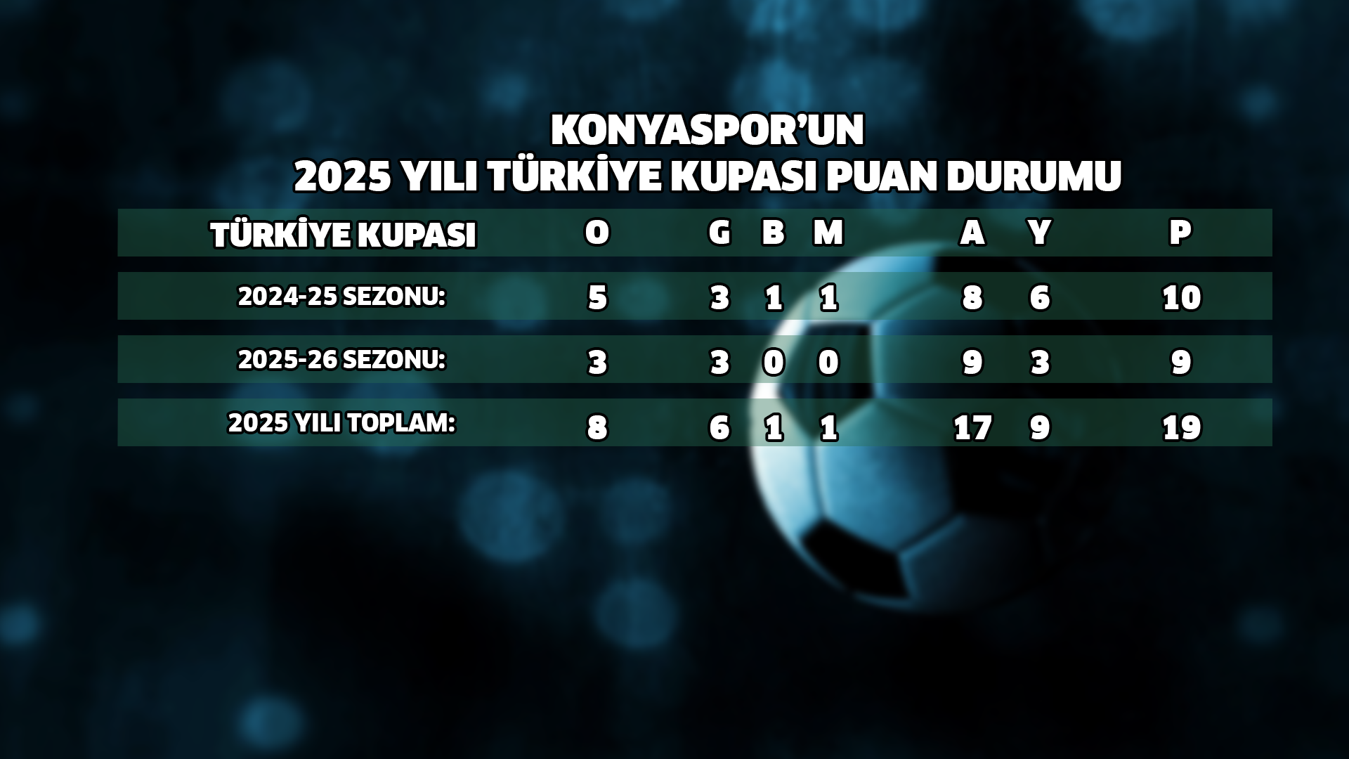 Konyaspor, 2025 yılında Türkiye Kupası arenasında da boy gösterdi. Yeşil-beyazlılar gerek tekli eleme gerekse grup aşamalarında tam 8 maça çıktı. Yeşil-beyazlılar bunlardan 6’sını kazanırken 1 maçtan beraberlikle, 1 maçtan da mağlubiyetle ayrıldı. Konyaspor bahse konu süreçte 17 kez ağlar sarsarken filelerinden de 9 top çıkarttı.
