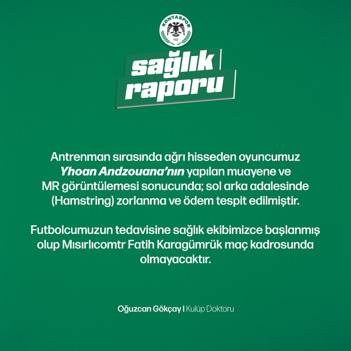 Kulüp doktoru Oğuzcan Gökçay tarafından yapılan açıklamada, oyuncunun tedavisine sağlık ekibi tarafından başlandığı belirtildi. Andzouana’nın bu sakatlık nedeniyle Fatih Karagümrük karşılaşmasının maç kadrosunda yer almayacağı ifade edildi.