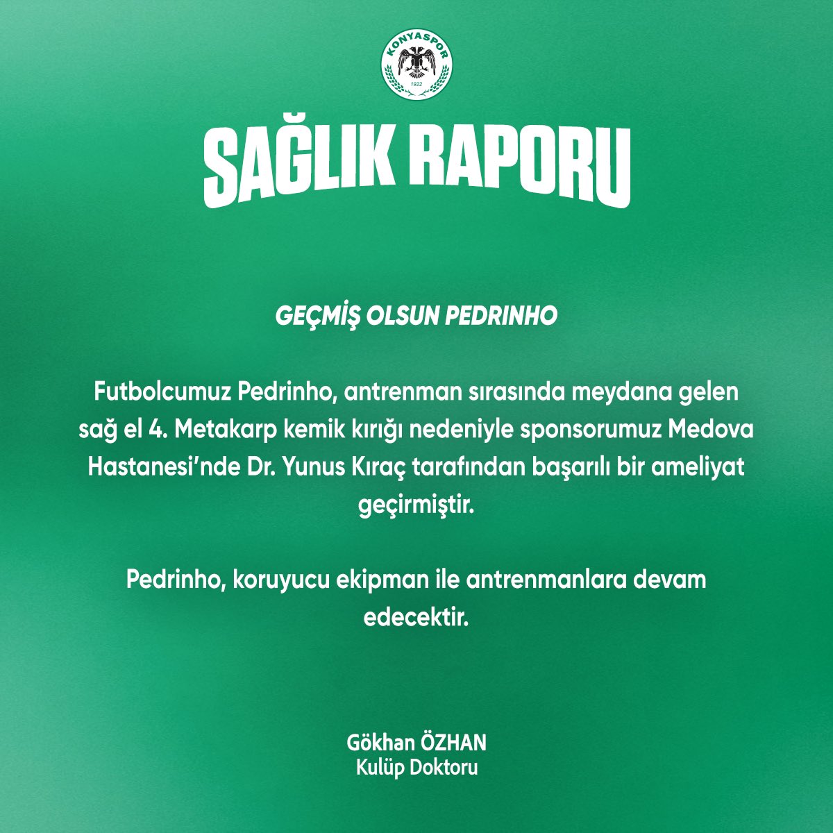 Konyaspor Kulüp Doktoru Gökhan Özhan, Kasımpaşa maçı öncesi yapılan antrenmanda sakatlanan Pedrinho’nun sağlık durumu hakkında açıklamada bulundu.