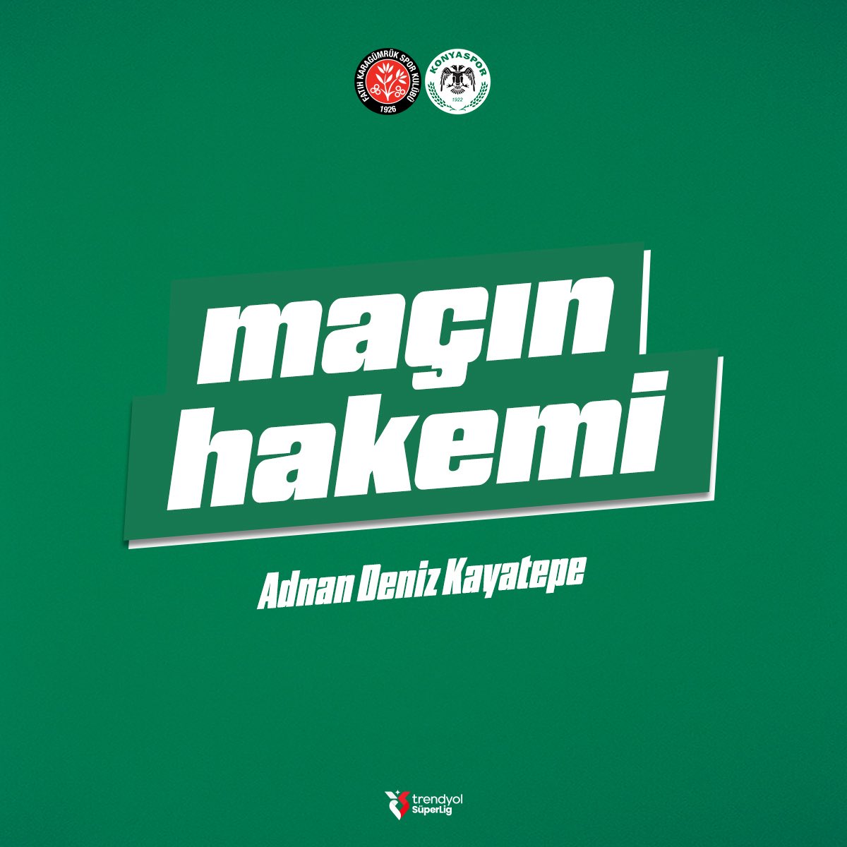 Trendyol Süper Lig’in 12. haftasında Konyaspor, 9 Kasım Pazar günü saat 14.30’da Fatih Karagümrük’e konuk olacak. Karşılaşmayı hakem Adnan Deniz Kayatepe yönetecek. Yardımcı hakemler ise Gökhan Barcın ve Murat Altan olarak belirlendi.