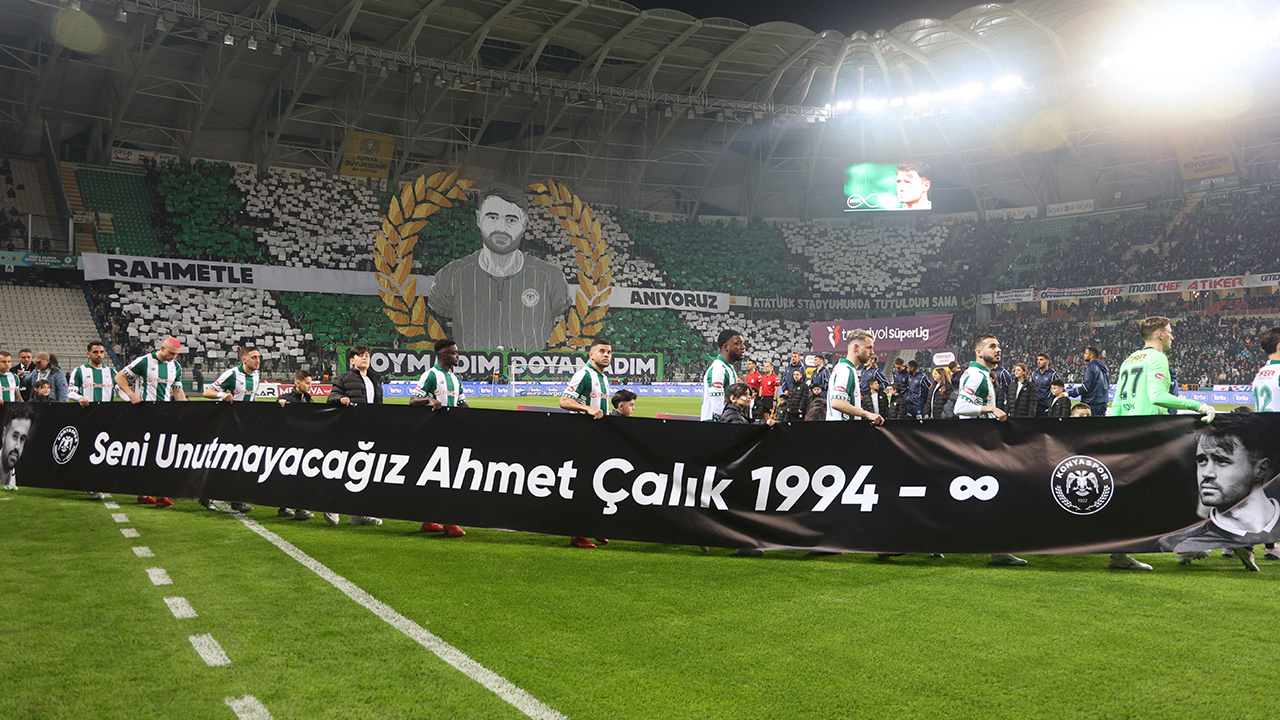Trendyol Süper Lig'in 19. haftasında Fenerbahçe ile karşılaştıkları maçın seremonisinde Konyasporlu futbolcular, 3. yıl önce trafik kazasında hayatını kaybeden futbolcusu Ahmet Çalık'ı unutmadı. Futbolcular sahaya “Seni Unutmayacağız Ahmet Çalık” yazılı pankartla çıktı.