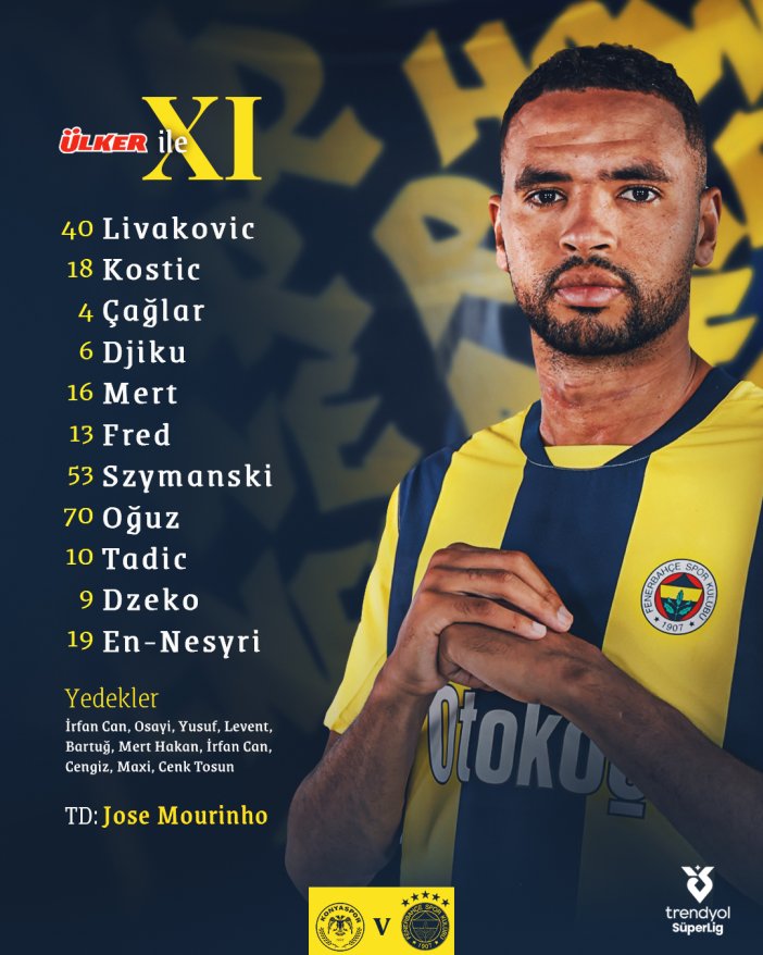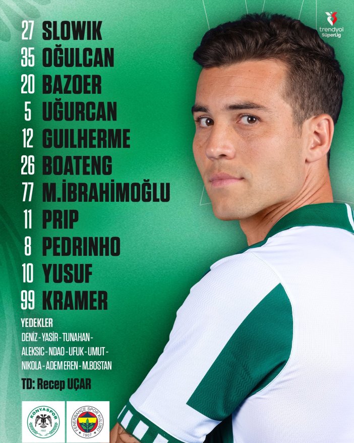 Bu akşam Medaş Konya Büyükşehir Stadyumu'nda oynanacak ve saat 20.00'de başlayacak Konyaspor-Fenerbahçe maçının ilk 11’leri belli oldu.İşte detaylar…