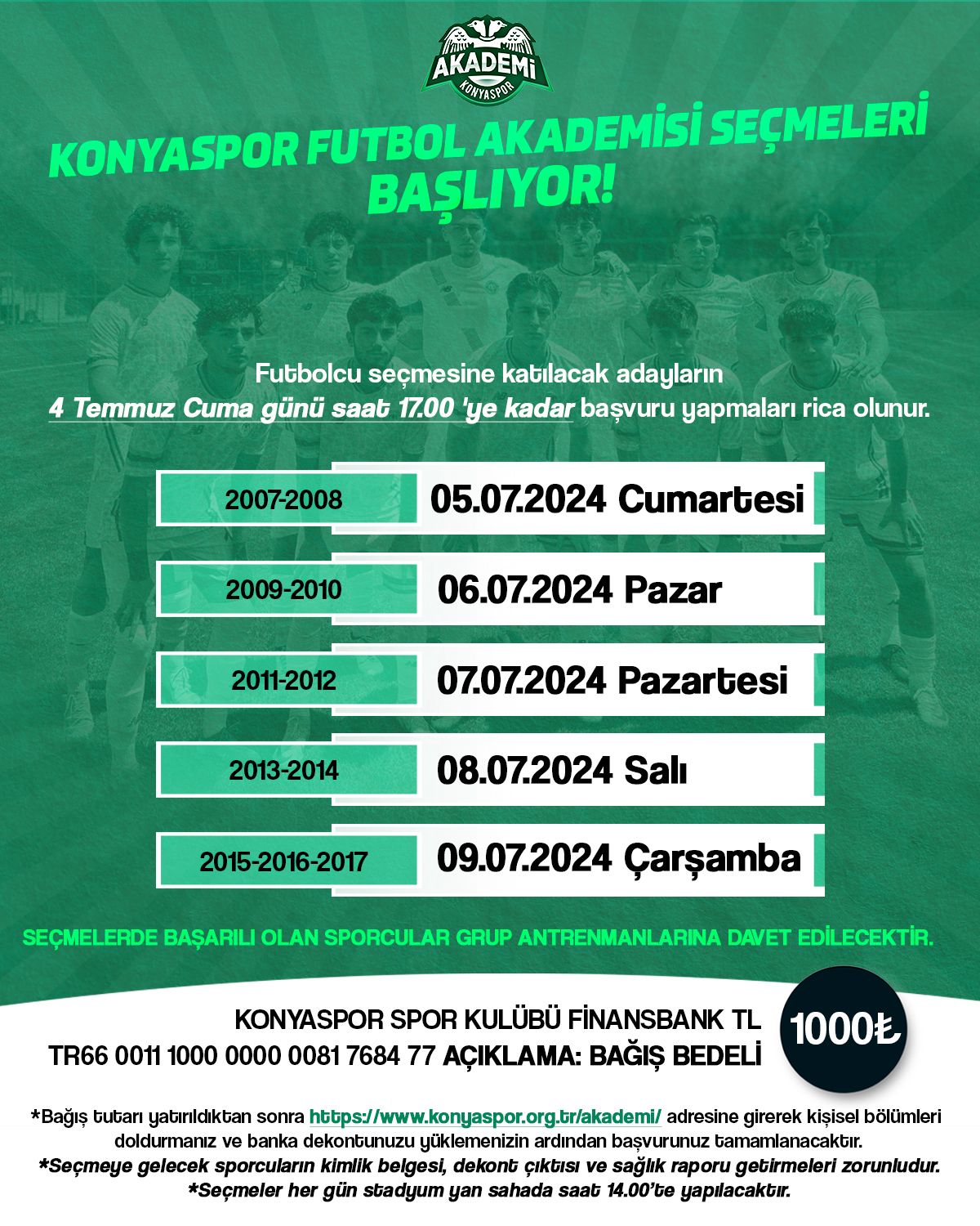 Başvuru: konyaspor.org.tr/akademi