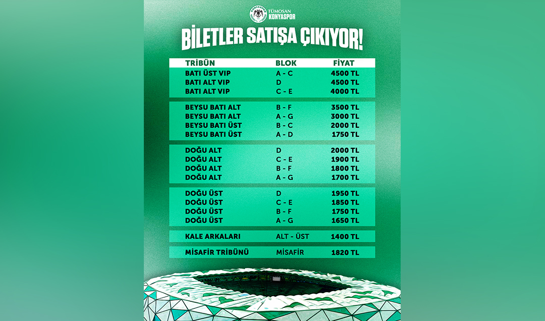 Konyaspor, yazılı açıklamanın son bölümünde önemli bir hatırlatma yaptı. Yeşil-beyazlı kulüp biletlerle ilgili olarak; “Beşiktaş, Fenerbahçe ve Galatasaray maçlarında bilet transferi yapılamayacaktır” ifadelerine yer verdi.