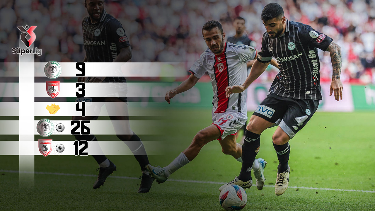 Konyaspor ile Samsunspor, Süper Lig nezdinde daha önce 16 kez karşı karşıya geldi. Bu maçlardan 9’u Anadolu Kartalı’nın, 3’ü ise Samsun ekibinin üstünlüğüyle sona erdi. Arda kalan 4 maçta ise eşitlik bozulmadı. Konyaspor, Samsun ağlarına 26 gol gönderirken, filelerinden de 12 top çıkarttı.