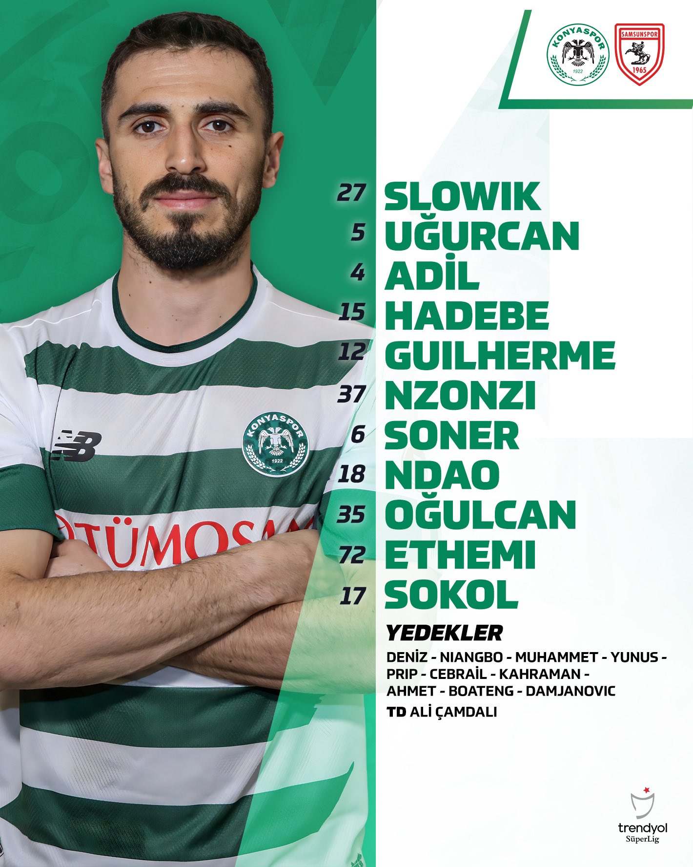 Süper Lig’in 36. Haftasında Konyaspor- Samsunspor ilk 11’leri belli oldu!