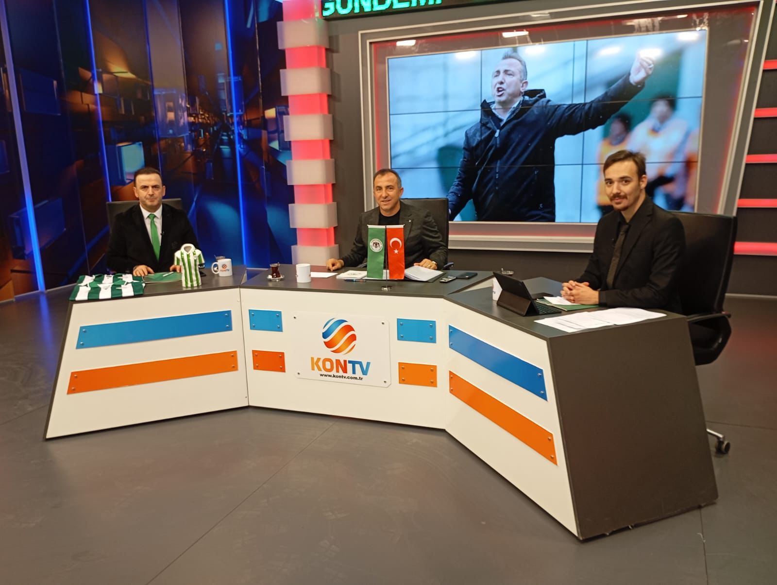 Konyaspor Teknik Direktörü Recep Uçar, KONTV ekranlarında yayınlanan ve Pazartesi akşamlarının vazgeçilmez programı olan Spor Gündemi’nin konuğu oldu. Recep Uçar’ı ANMEG Plaza’da, Anadolu Medya Grup Mütevellisi Nurettin Bay ve İlker Özkan karşıladı. Samimi bir ortamda gerçekleştirilen sohbetin ardından tüm gözler Spor Gündemi’ne çevrildi. Mustafa Durmuş ve Hasan Yıldırım’ın sorularını yanıtlayan Uçar, birçok konuya açıklık getirdi. İşte programda öne çıkan konu başlıkları…