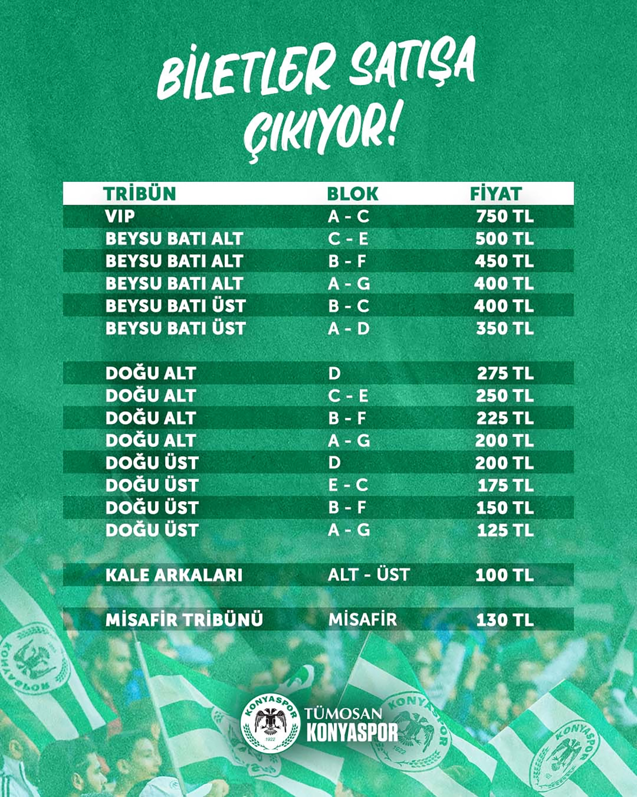 Konyaspor, Trendyol Süper Lig'in 31. haftasında Trabzonspor'u konuk edecek. MEDAŞ Konya Büyükşehir Stadyumu'nda oynanacak maçın biletleri 27 Mart Çarşamba günü satışa çıkacak.
