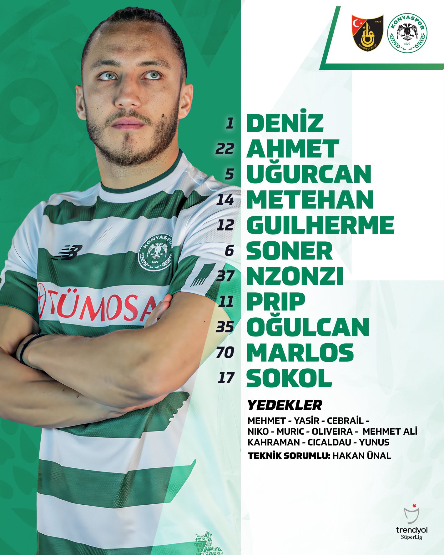Konyaspor: Ertaş, Yazğılı, Dikmen, Andreasen, Sitya, Mert, Cikalleshi, Oğuz, Ülgün, Nzonzi, Moreno