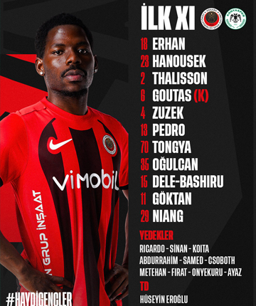 GENÇLERBİRLİĞİ'NİN İLK 11'İ BELLİ OLDU