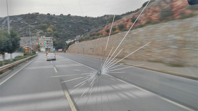 Atiker Konyaspor'un takım otobüsüne taşlı saldırı düzenlendi.