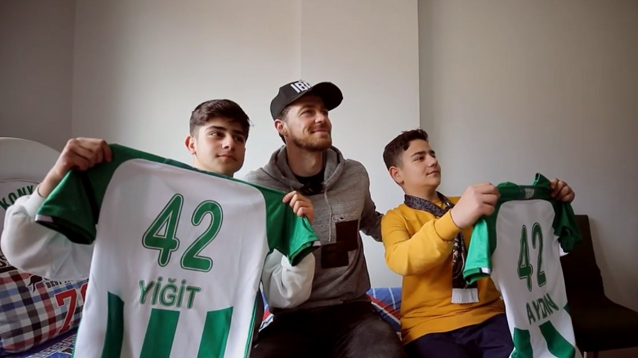 Konyasporlu futbolcular İbrahim Sehic, Guilherme Sitya ve Soner Dikmen, yeşil-beyazlı minik taraftarlara sürpriz yaptı. Anadolu Kartalı’nın başarılı oyuncuları minik taraftarların evlerine giderek onlara yeşil-beyazlı forma hediye etti.