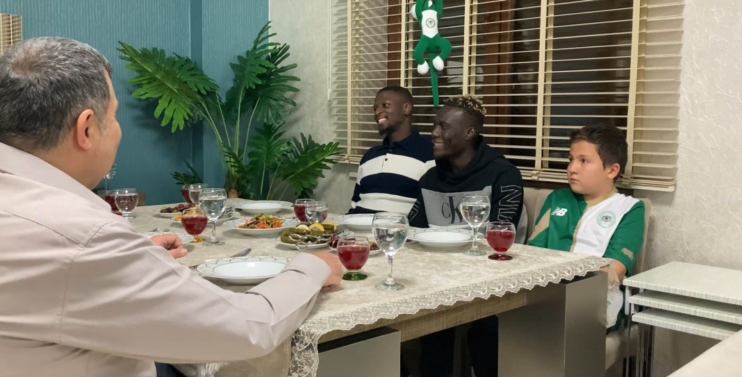 Konyasporlu Alassane Ndao ve Hamidou Keyta, Konyalı bir ailenin iftar sofrasına misafir oldu.