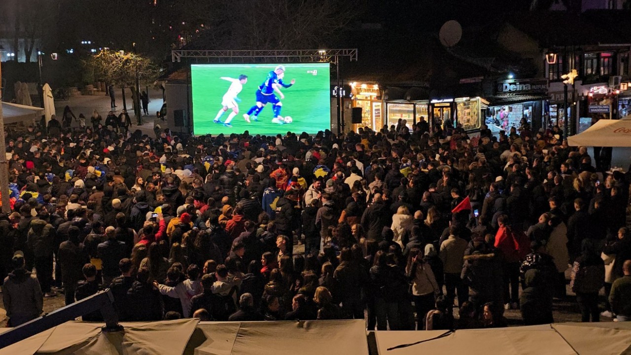 Priştine’de stadyum çevresinde coşkulu bir atmosfer yaşanırken, Prizren’de meydanı dolduran futbolseverler milli takımlarının mücadelesine ortak heyecanla tanıklık ediyor. Yüzlerce Kosovalı ellerinde Kosova, Arnavutluk ve Kosova Kurtuluş Ordusu (UÇK) bayraklarıyla maçı dev ekrandan takip ediyor.