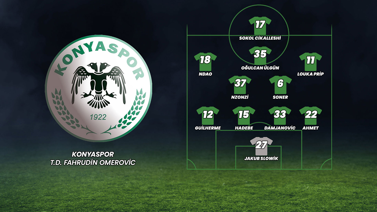 Teknik direktör Fahrudin Ömerovic nezaretinde 4-2-3-1 dizilişiyle mücadele eden Konyaspor’un, kritik Pendikspor maçında da aynı sistemle sahada yer alması bekleniyor. Yeşil-beyazlıların kalesinde Jakub Slowik (27), savunma 4’lüsünde Ahmet Oğuz (22), Filip Damjanovic (33), Teenage Hadebe (15) ve Guilherme Sitya (12), 2’li ön liberoda Soner Dikmen (6) ve Steven Nzonzi (37), 3’lü orta sahada Louka Prip (11), Oğulcan Ülgün (35) ve Alassane Ndao (18), forvette ise Sokol Cikalleshi’nin (17) forma giymesi bekleniyor. (Hasan Yıldırım)