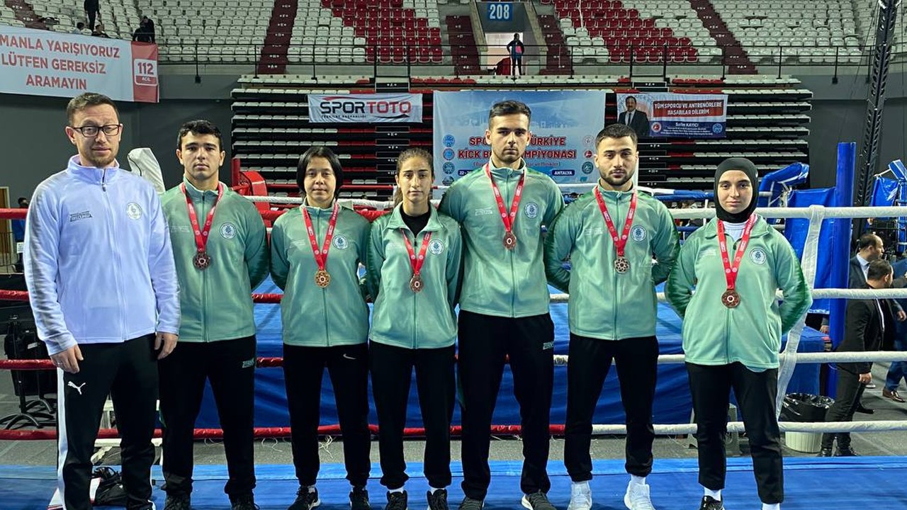 Selçuklu Belediyespor kick boks takımı başarılarına bir yenisini daha ekledi. 81 ilden yaklaşık 3 bin 500 sporcunun katılımıyla Antalya’da düzenlenen Türkiye Kick Boks Şampiyonası’nda mücadele eden Selçuklu Belediyesporlu sporcular, şampiyonadan toplamda 6 madalyayla döndü.