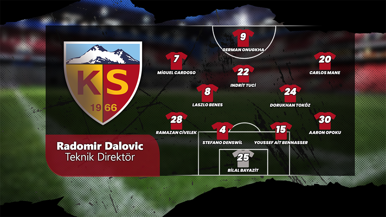 Karadağlı teknik adam Radomir Dalovic ile 4-2-3-1 dizilişiyle mücadele eden Kayserispor’un; Konyaspor’a karşı da aynı diziliş ve oyun anlayışıyla sahada yer alması bekleniyor. Sarı-kırmızılı ekibin kalesinde Bilal Bayazit (25), savunma 4’lüsünde Aaron Opoku (30), Youssef Ait Bennasser (15), Stefano Denswil (4) ve Ramazan Civelek (28), 2’li ön liberoda Dorukhan Toköz (24) ve Laszlo Benes (8), 3’lü orta alanda Carlos Mane (20), Indrit Tuci (22) ve Miguel Cardoso (7), tekli forvet hattında ise German Onugkha’nın (9) görev alması bekleniyor. (Büşra Üstündağ)