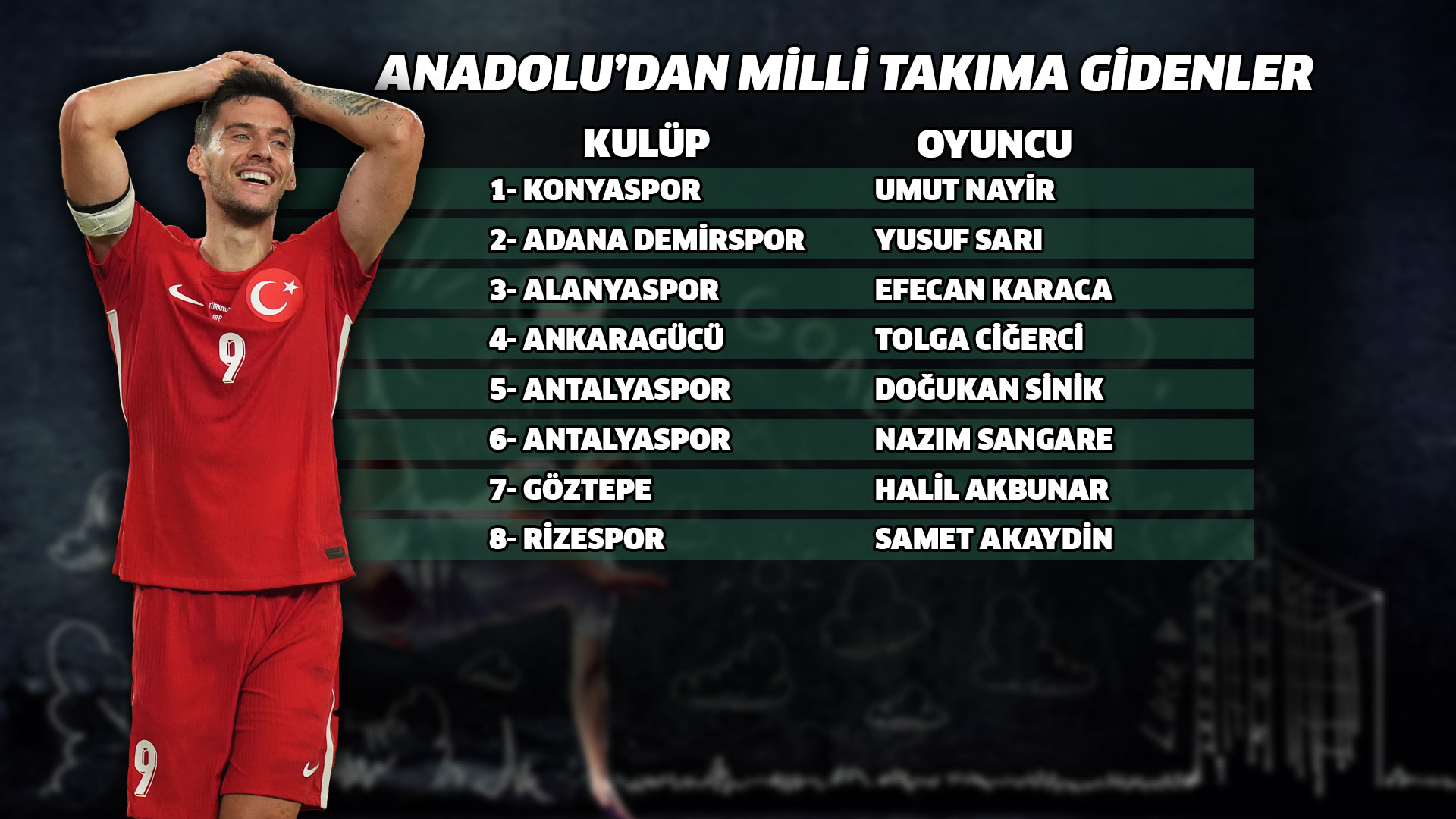 Son 5 yıl baz alındığında; Anadolu’da Süper Lig şampiyonluğu bulunan Trabzonspor haricindeki kulüplerden sadece 7 tanesi milli takımımıza sporcu gönderebildi. Bahse konu periyotta Konyaspor’dan Umut Nayir, Adana Demirspor’dan Yusuf Sarı, Alanyaspor’dan Efecan Karaca, Ankaragücü’nden Tolga Ciğerci, Antalyaspor’dan Doğukan Sinik ile Nazım Sangare, Göztepe’den Halil Akbunar ve Rizespor’dan Samet Akaydin milli takıma giden isimler oldu. Peki, bu oyuncular kaç dakika sahada kaldı?