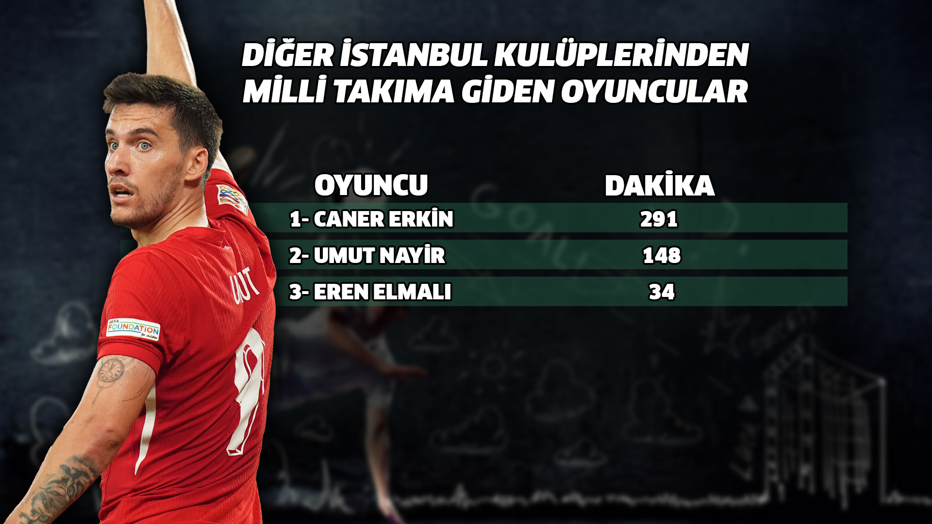 Süper Lig şampiyonluğu yaşamayan İstanbul kulüpleri de dönem-dönem milli takıma oyuncu gönderdi. Eyüpspor, Kasımpaşa, Karagümrük ve Ümraniyespor listede yer alan kulüpler oldu. Oyuncu bazında bakıldığında 291 dakika ile Caner Erkin listenin zirvesinde yer alırken, 148 dakika ile Umut Nayir 2, 34 dakika ile de Evren Eren Elmalı 3. sırada kendisine yer buldu.(Büşra Üstündağ)