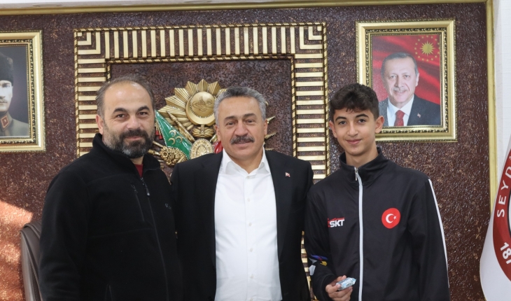 Konya’da gerçekleştirilen müsabakalarda 49 kiloda yaptığı maçların tamamını kazanan Aldıran, Belediye Başkanı Mehmet Tutal tarafından ödüllendirildi.