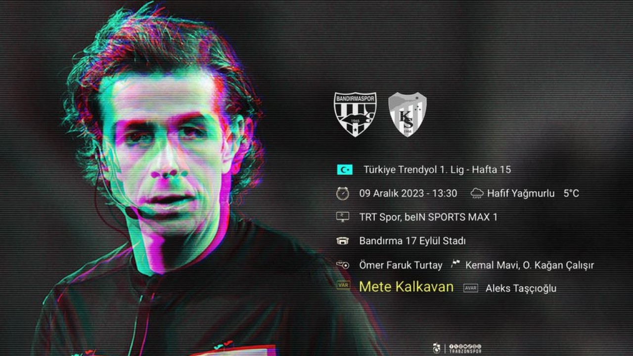 “04.11.2023 tarihinde Fenerbahçe ile oynadığımız karşılaşmada, yaptığı hatalarla Türk futbolunu lekeleyen VAR hakemi Mete Kalkavan, bugün bir lig karşılaşmasında görev aldı. Fenerbahçe maçı sonrası Türkiye Futbol Federasyonu ve Merkez Hakem kurulu, bu şahsın bir daha 'asla' maç alamayacağını kulübümüze iletmişti. 'Türkiye Futbolunu' yöneten kurumların ‘Bir daha asla maç alamayacak’ dediği bir isme 4 hafta sonra tekrar görev vermesi, bundan sonraki tüm söylem ve kararlarını niteliksiz ve güvenilmez kılmıştır. Türkiye Futbol Federasyonu ve Merkez Hakem Kurulu’nun bundan sonra alacağı tüm kararlar; Trabzonspor için ‘yok’ hükmündedir. Söz verip sözünde durmayanlar! Görünen o ki; hepiniz derhal değişmesi gereken bu pis ve aşağılık düzenin hizmetkarlarısınız. Biz; Trabzonsporuz. Sözümüzün eriyiz! Kurduğunuz bu kirli düzeni yerle bir edeceğiz.”