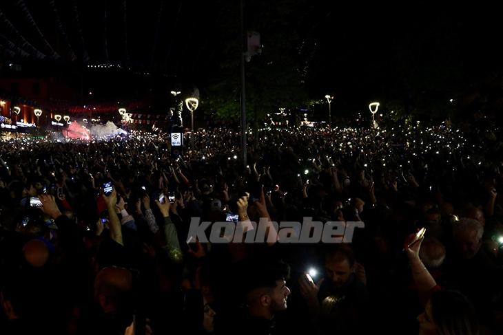 Törene gidemeyen bazı taraftarlar Trabzon Kent Meydanı’nda takımlarının şampiyonluğunu kutladı.