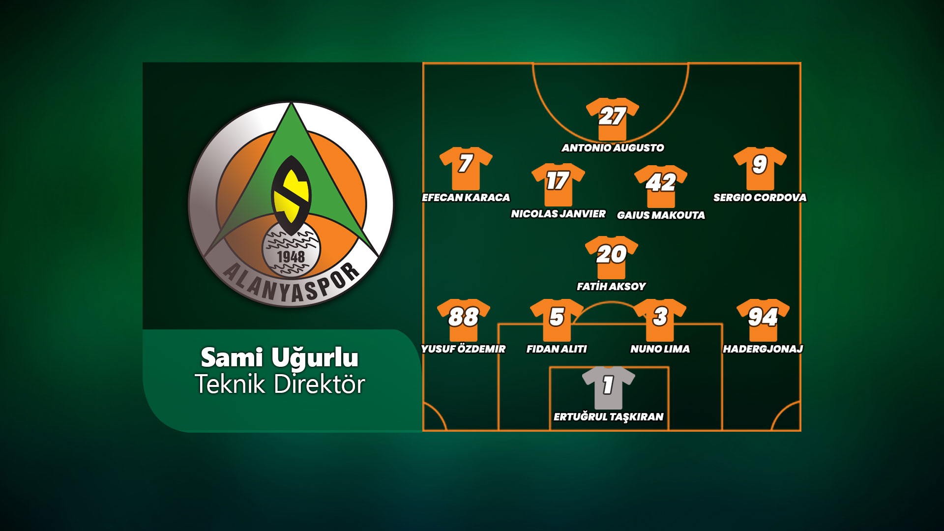 Teknik direktör Sami Uğurlu nezaretinde 4-1-4-1 sistemiyle mücadele eden Alanyaspor’un; Tümosan Konyaspor’a karşı da aynı diziliş ve oyun anlayışıyla sahada yer alması bekleniyor. Yeşil-turuncuların kalesinde Ertuğrul Taşkıran (1), savunma 4’lüsünde Florent Hadergjonaj (94), Nuno Miguel Reis Lima (3), Fidan Aliti (5) ve Yusuf Özdemir (88), tekli ön liberoda Fatih Aksoy (20), 4’lü orta alanda Sergio Cordova (9), Gaius Makouta (42), Nicolas Janvier (17) ve Efecan Karaca (7), tekli forvette ise Antonio Augusto’nun (27) forma giymesi bekleniyor.