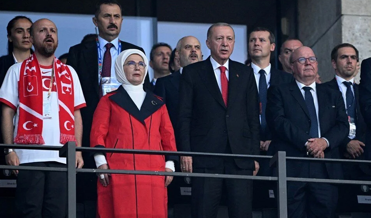 Cumhurbaşkanı Recep Tayyip Erdoğan ve eşi Emine Erdoğan da Berlin Olimpiyat Stadyumu’nda karşılaşmayı takip etti.