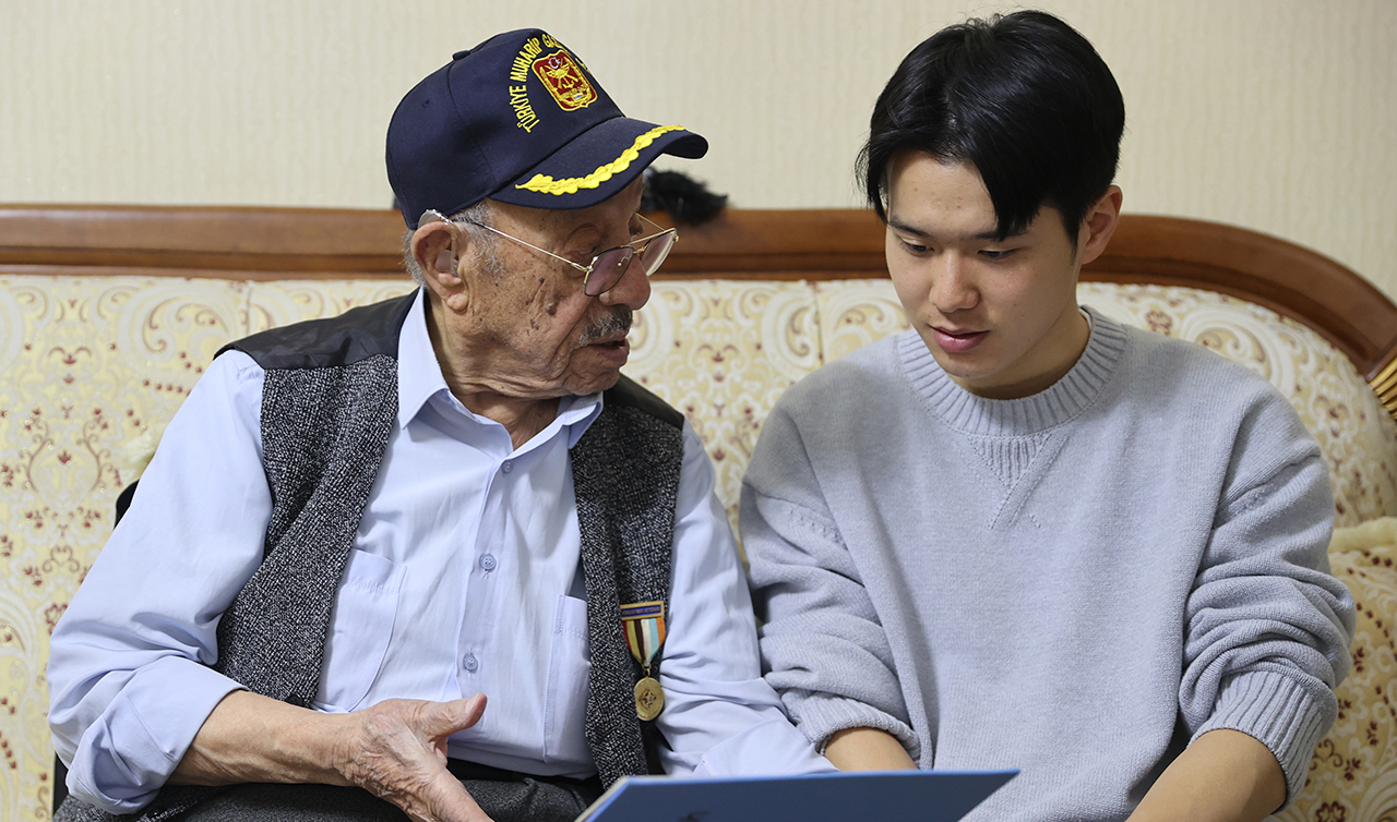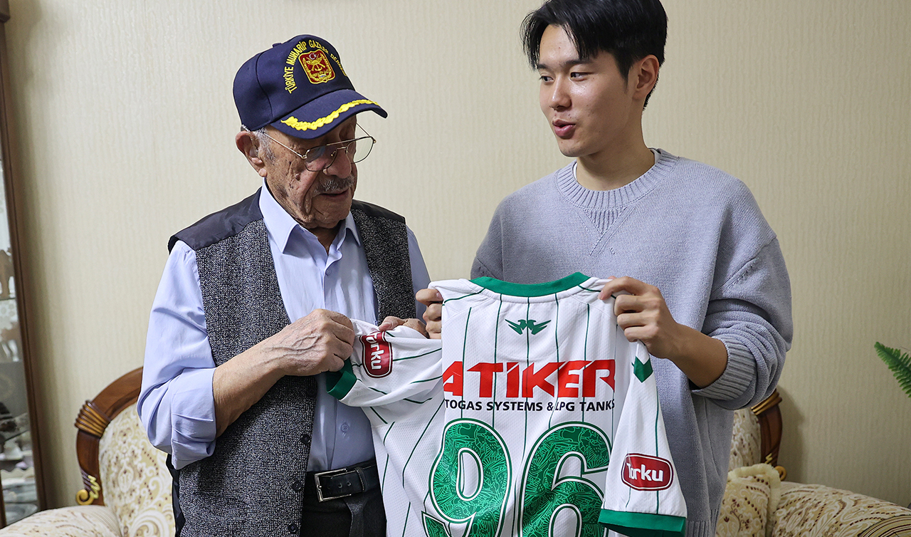 Damdan'ın kent merkezindeki evinde duygusal ve zaman zaman da keyifli anların yaşandığı ziyarette Jinho, Kore gazisine 96 numaralı forma hediye etti.