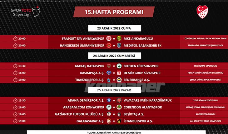TFF, Süper Lig'de 15-18. hafta müsabaka programlarının takvimini açıkladı. Yeşil-beyazlılar, ligde 15. Hafta maçında 25 Aralık Pazar günü saat 16:00'da Alanyaspor’u sahasında konuk edecek.