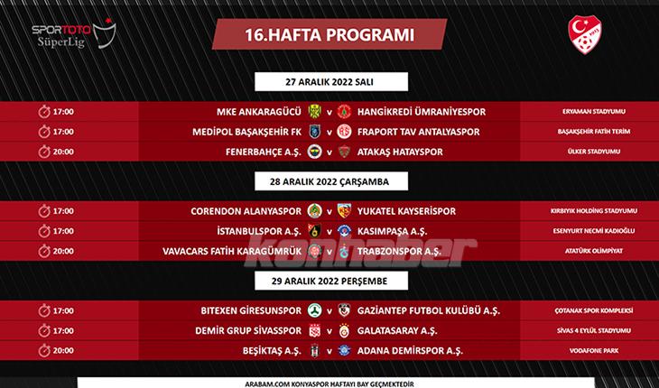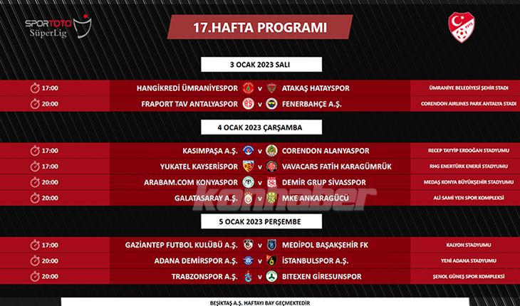 19 - 25. hafta müsabakalarına ilişkin program, Ziraat Türkiye Kupası Son 16 Turu eşleşmeleri sonrası, kalan haftalar ise Ziraat Türkiye Kupası Çeyrek Final ve Yarı Final eşleşmeleri ve takımların Avrupa Kupası maçlarına göre planlanarak ilan edilecek.