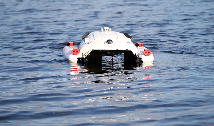 Koç Bilgi ve Savunma Teknolojileri AŞ (KoçSavunma) tarafından geliştirilen insansız su üstü temizleme robotu, deniz ve göl yüzeylerindeki çöpleri topluyor.