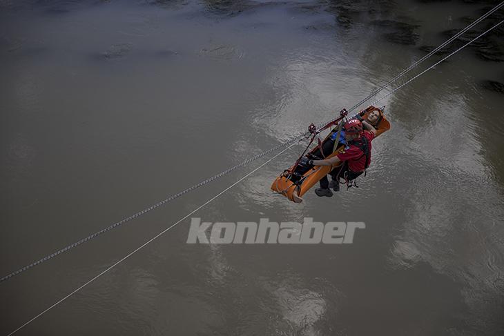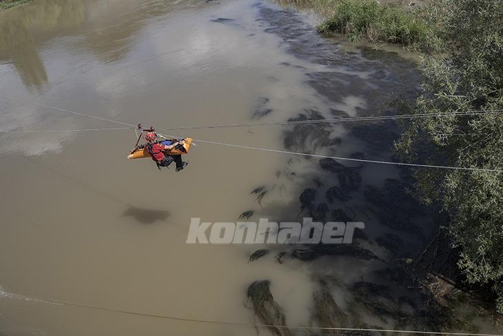 Eğitimler için gerçek mekanları tercih ediyorlarKızılırmak Nehri'nde gerçeği aratmayan bir eğitim programı düzenlediklerini belirten Özbek, senaryo gereği selde kaybolan bir kişinin arama-kurtarma faaliyetini ve mahsur kalan vatandaşların tahliyesini yaptıklarını söyledi.
