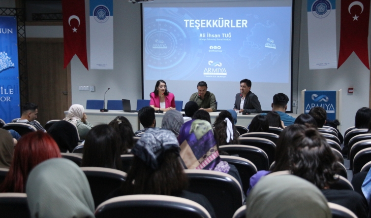 Necmettin Erbakan Üniversitesi Turizm Fakültesince, fakültenin konferans salonunda düzenlenen etkinlikte, Turizm Fakültesi Öğretim Üyesi Doç. Dr. Yılmaz Seçim ile Armiya Teknoloji Genel Müdürü Ali İhsan Tuğ ve Genel Müdür Yardımcısı Özgen Kart, üniversite öğrencileriyle bir araya geldi.