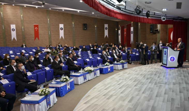 Kırıkkale Üniversitesi Rektörü Prof. Dr. Ersan Aslan ise üniversite olarak kentin gelişmesi ve kalkınmasında üzerlerine düşen her türlü görevi eksiksiz ve layıkı ile yerine getireceklerini ifade ettiği konuşmasını şöyle sürdürdü; “Sanayi ve Teknoloji Bakanlığımız Kalkınma İdarelerimize çok iyi bir bütçe ayırmış ve bu bütçeden Kırıkkale’deki tüm paydaşlar olarak bir araya gelerek çok iyi bir pay almamız gerekiyor. 2018 yılında üniversitede tüm yönetici arkadaşlarıma şehirdeki kendi paydaşlarıyla birlikte en az bir proje yapacak dememiz, ilimizin KOP idaresinden alacağı payın artmasına yönelikti. Hem il olarak hem de üniversite olarak KOP İdaresine ayrılan bütçeden daha iyi pay alabilmesinin yolu daha iyi projeler sunmaktır. 2021-2023 yıllarını kapsayan KOP Bölge Kalkınma Programı bizim için önemli ve bu alanlarda üniversite olarak üzerimize düşen her türlü desteği vermeye hazırız. Tarım-Su alanında organik tarım bölümümüz var. Turizm alanında Turizm Otel İşletmeciliği bölümümüz var, Sanayi ve enerji derseniz mühendislik ve sosyal bilimler alanlarında katkıya hazırız. Beşeri sermaye alanında ise zaten konuşmaya lüzum yok, üniversitemizin varlığı beşeri sermayeyi artırmaktır. Ama bunu yaparken mutlaka bütün paydaşlarımızın ortak hareket etmesi lazım bizlerde her türlü desteğe açığız. KOP İdaresine daha önce sunulan projelerde şöyle bir kurumsal eksiklik olduğunu gördüm ve bununda üzerine gitmemiz gerekiyor. Hazırladığımız projelerde AR-GE ve ÜR-GE bir arada olmalı. En azından AR-GE’nin içinde olması lazım. Örneğin tarımsal bir proje hazırlanırken içerisinde ÜR-GE’nin de olması projenin kabul edilmesinde önemli bir dayanak olacaktır. Diğer taraftan ihracat yönü güçlü olan projeler sunmalıyız. Yani hazırladığınız projede bir veya birden çok ülkeye ihraç edebileceğimiz projeler hazırlamalıyız. Ülkenin gelişmişliğinin temel motoru teknolojik ürün üretmektir. Sadece mühendislik alanında değil, her alanda geçerli. Bu çerçevede önümüzdeki 3 yılı kapsayan KOP Bölge Kalkınma Programı döneminde güzel çalışmalar yapalım ve Kırıkkale özelinde ülkemize güzel kazanımlar sağlayalım.”