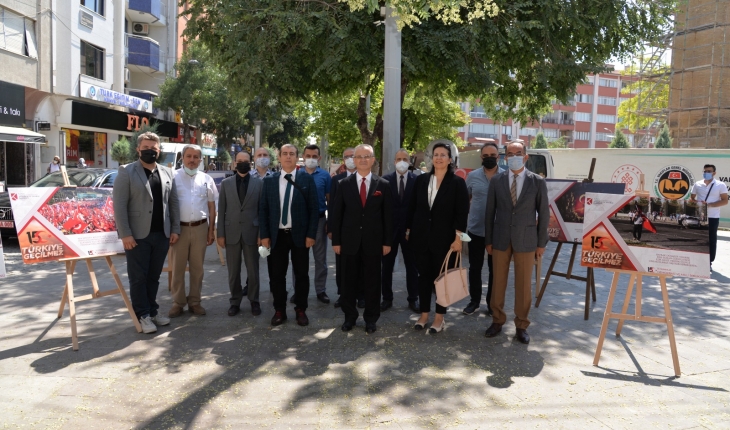 Rektör Prof. Dr. Babür Özçelik yaptığı konuşmada, “Millet iradesine kasteden hain darbe girişimine karşı toplumsal hafızamızın diri tutulması, demokrasimizin güçlenmesi, şehitlerimizin ve gazilerimizin hatırlanması için sembol niteliği taşıyan 15 Temmuz ruhunu her daim yaşatmalı, unutmamalı, unutturmamalıyız. Konya Teknik Üniversitesi olarak aynı ruh ve inançla aklın ve etiğin bir arada yürütüldüğü, demokratik, vatanına, milletine ve bayrağına sahip çıkan, dünya standartlarında teknoloji üretmeye odaklanan bir üniversite anlayışıyla ülkemize ve milletimize olan sorumluluğumuzu en iyi şekilde yerine getirmeye çalışıyoruz. İnanıyoruz ki dün olduğu gibi bundan sonra da vatan, millet ve bayrak aşkını kutsal sayan bu milletin, birliğini ve birlikteliğini parçalamaya kimsenin gücü yetmeyecektir.” dedi. Sergi, 26 Temmuz 2021 tarihine kadar Teknik Bilimler MYO sergi salonunda Pandemi nedeniyle sosyal mesafe kuralları çerçevesinde ziyaret edilebilecek.