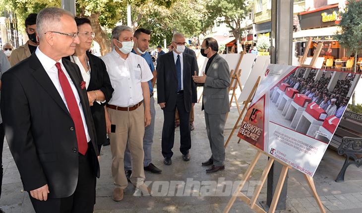 Konya Teknik Üniversitesi tarafından 15 Temmuz Demokrasi ve Milli Birlik Günü Anma Etkinlikleri kapsamında düzenlenen fotoğraf ve afiş sergisi Rektör Prof. Dr. Babür Özçelik’in katılımıyla açıldı.