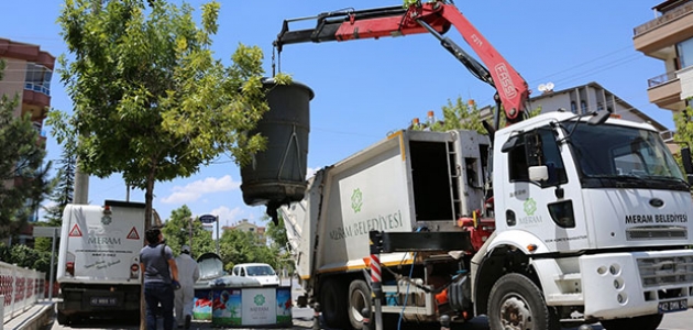 100 metre ilerimizde gömme çöp konteynırı var ve her hafta oraya araba geliyor bizim evimizin dibinde de ağzı açık çöp konteynırı var. Çoluk çocuk çöpün içinde oynaşıyor ah Meram ahh.